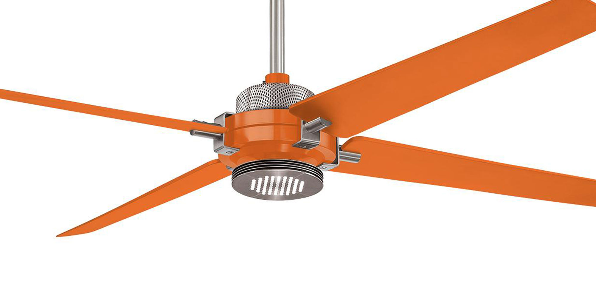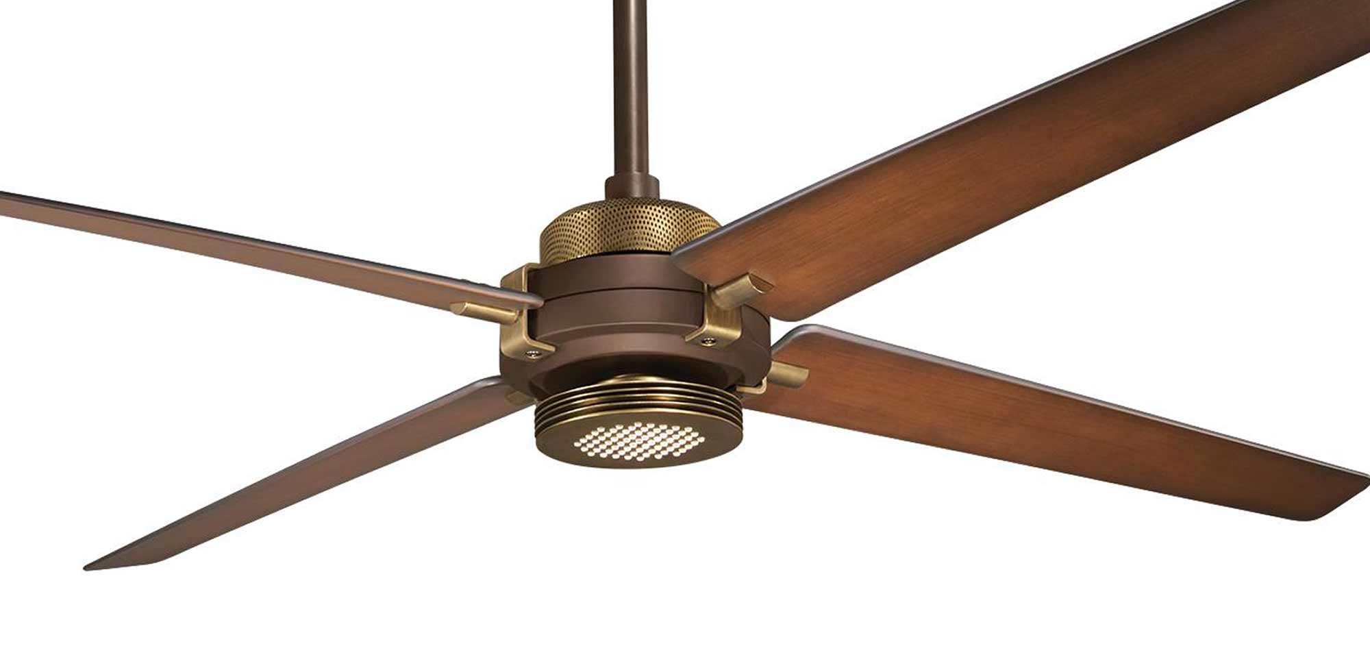 An honest, clean, industrial look gives this fan it’s appeal. The functions of the fan define the taut and clean shapes resulting in a no-nonsense yet friendly and well balanced design. The Spectre fan has beautiful detailing that looks great when seen from any distance. The fan uses a technologically advanced highly efficient 6 speed motor and includes LED lighting.